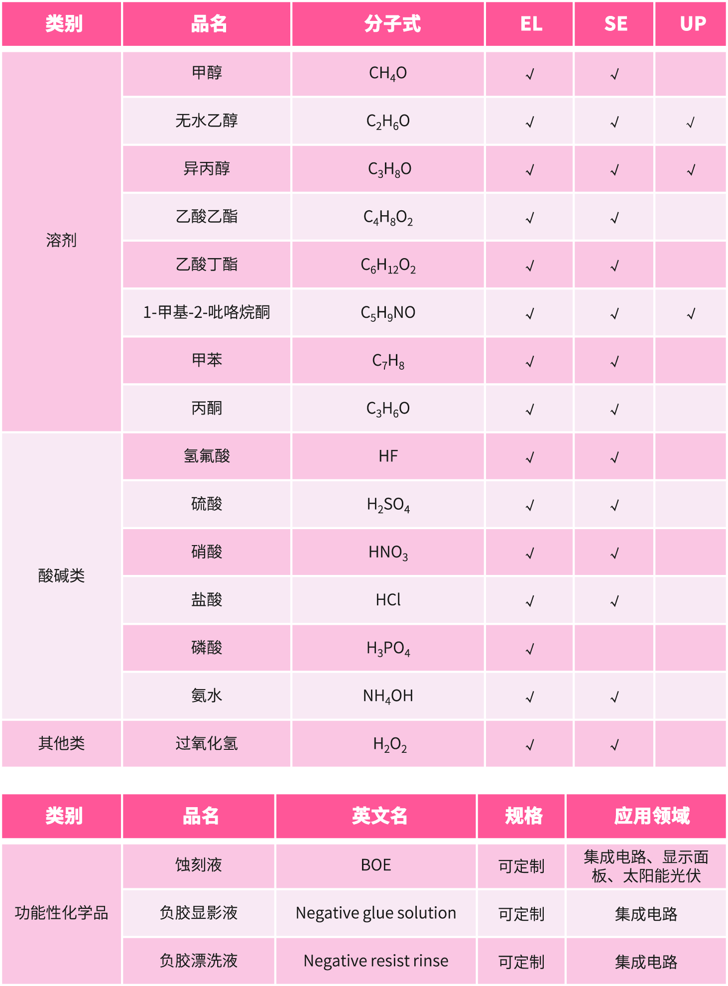 除了电子级(jí)磷酸之(zhī)外,我司还提供电子级的无水乙醇、盐(yán)酸、硝酸(suān)等,此类(lèi)产品可用于(yú)集成电路、太阳能光伏、显(xiǎn)示面板领域的清洗、刻蚀等环节,并且(qiě)已经成功服务了(le)众(zhòng)多(duō)行业内的客户。